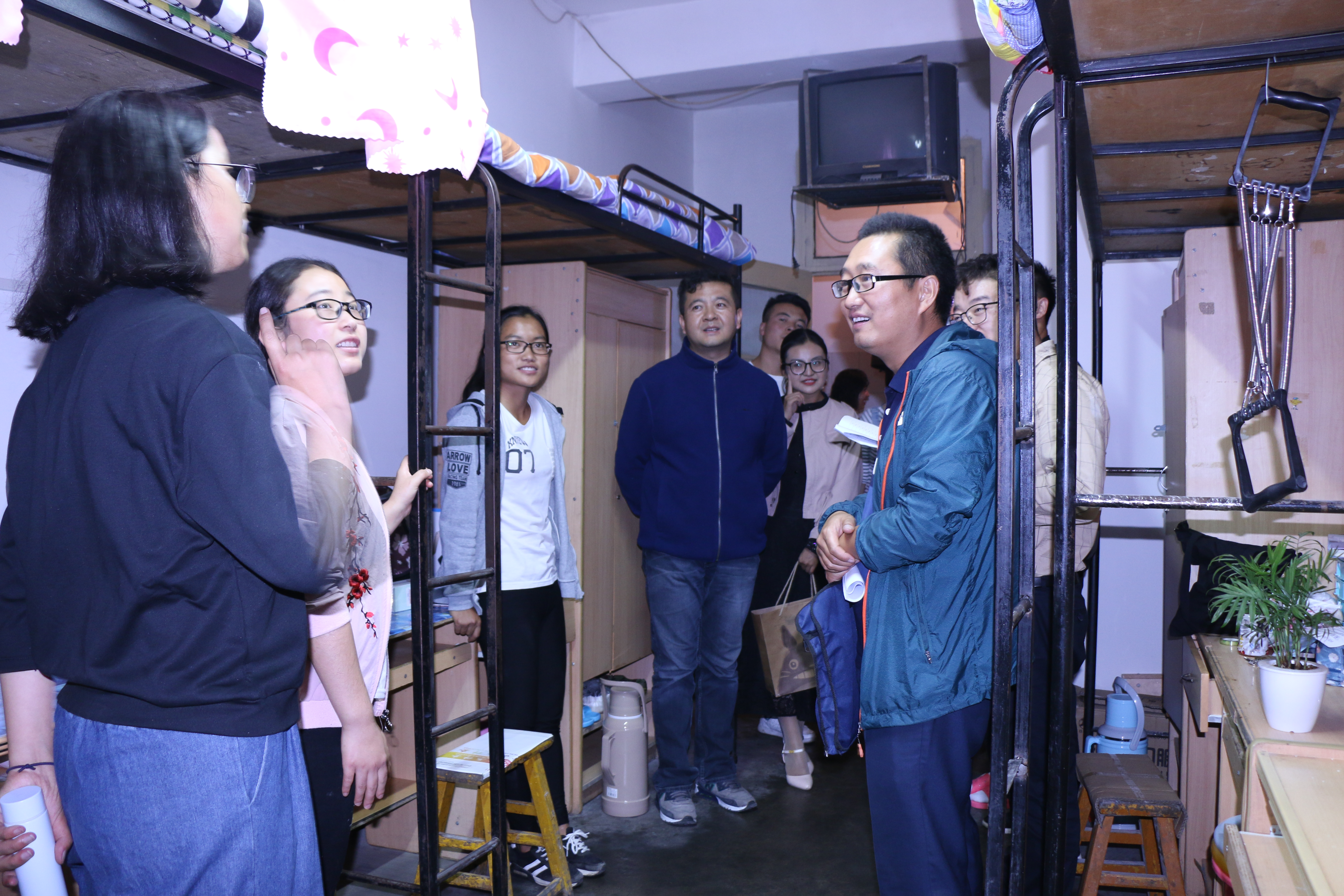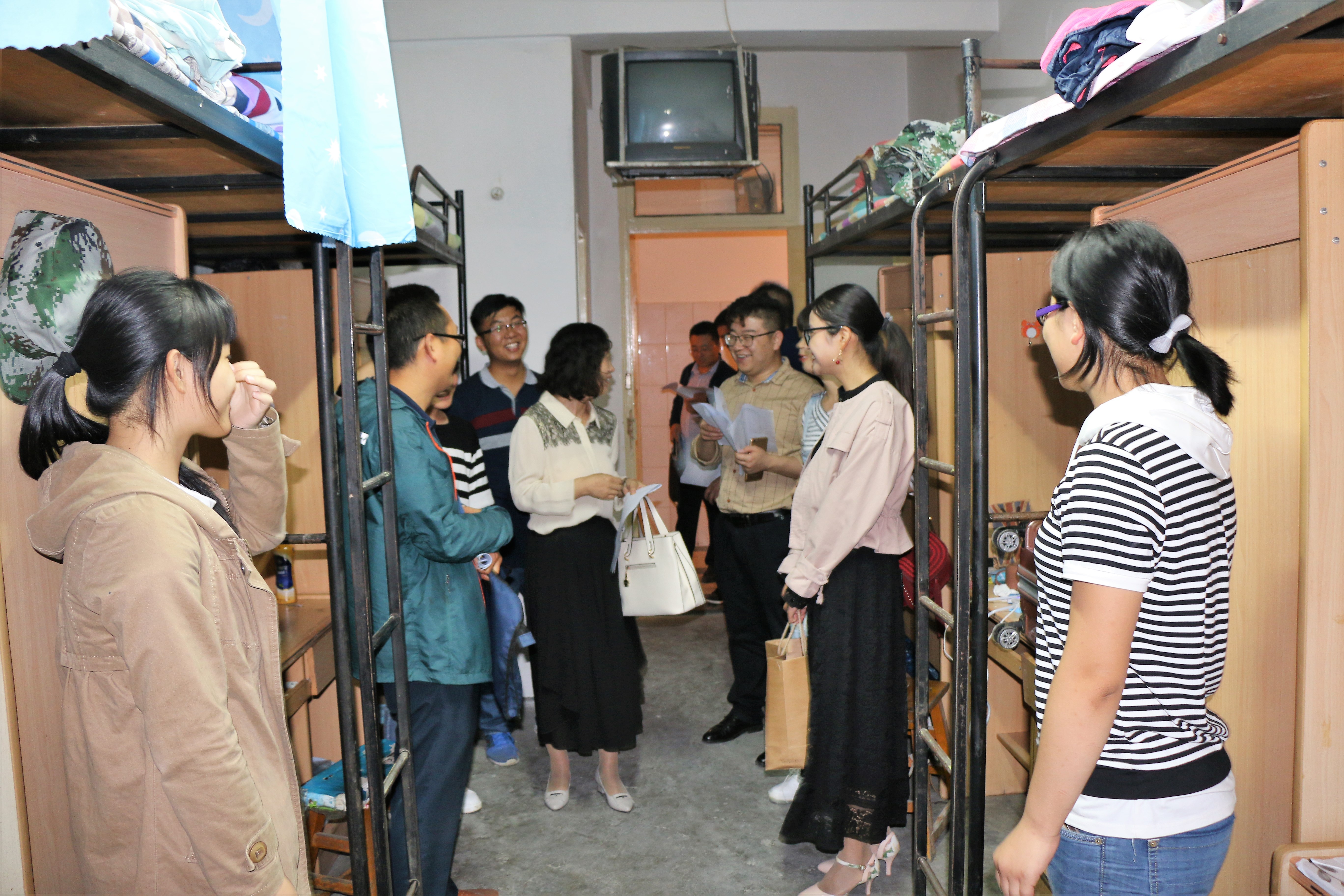 8月22日晚,公司党委副书记马科中、团委书记李靖、辅导员、各班班主任等一行人来到兰天公寓7号楼,走访、看望了2017级新生。