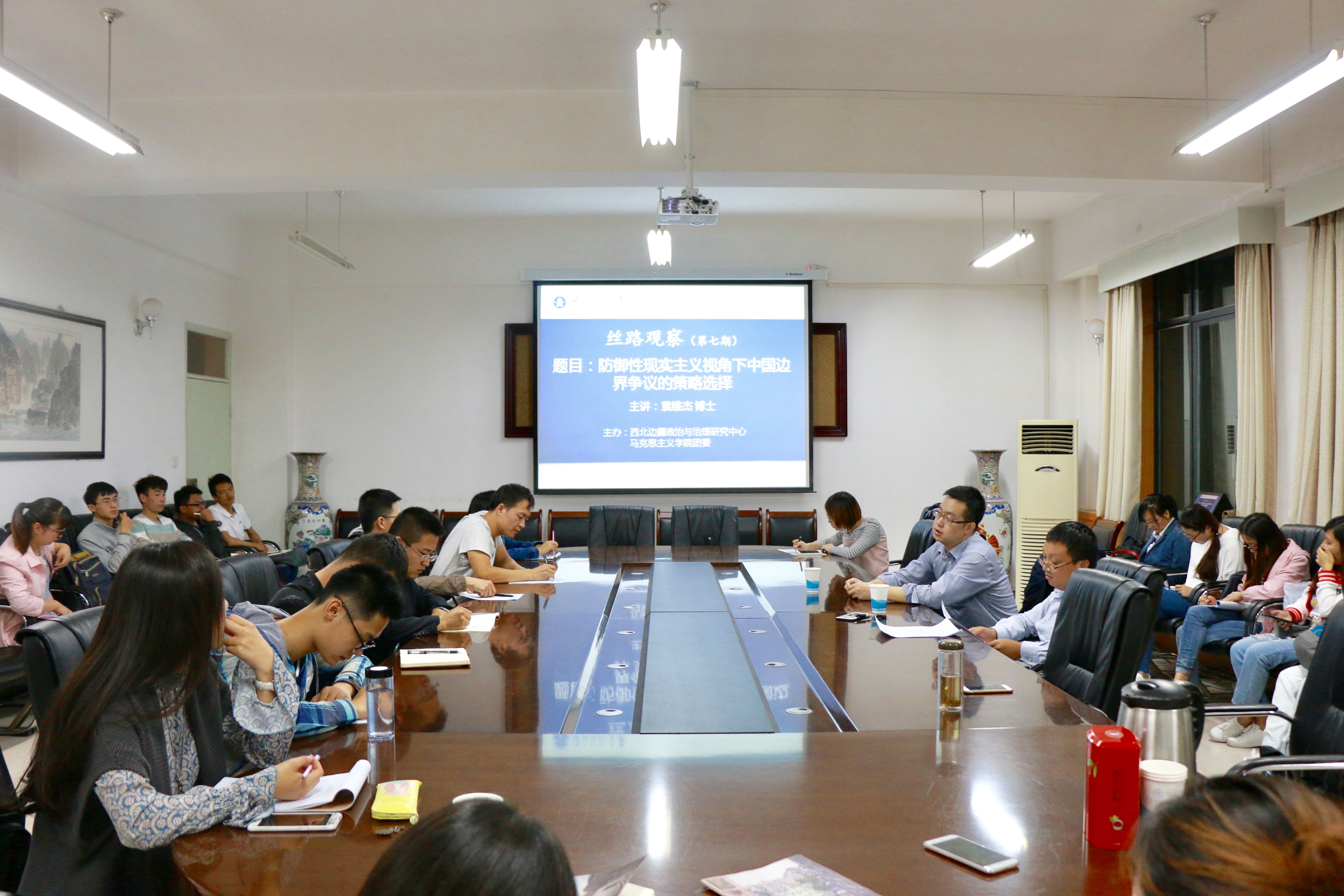 9月14日晚,西北边疆政治与治理研究中心和bv伟德国际1946团委联合主办的“丝路观察”学术沙龙第七期在bv伟德国际1946307会议室召开。本期讨论的主题是:“防御性现实主义视角下中国边界策略的选择”,由袁维杰博士主讲,曹亚斌博士主持,王树亮博士与员工参与讨论。