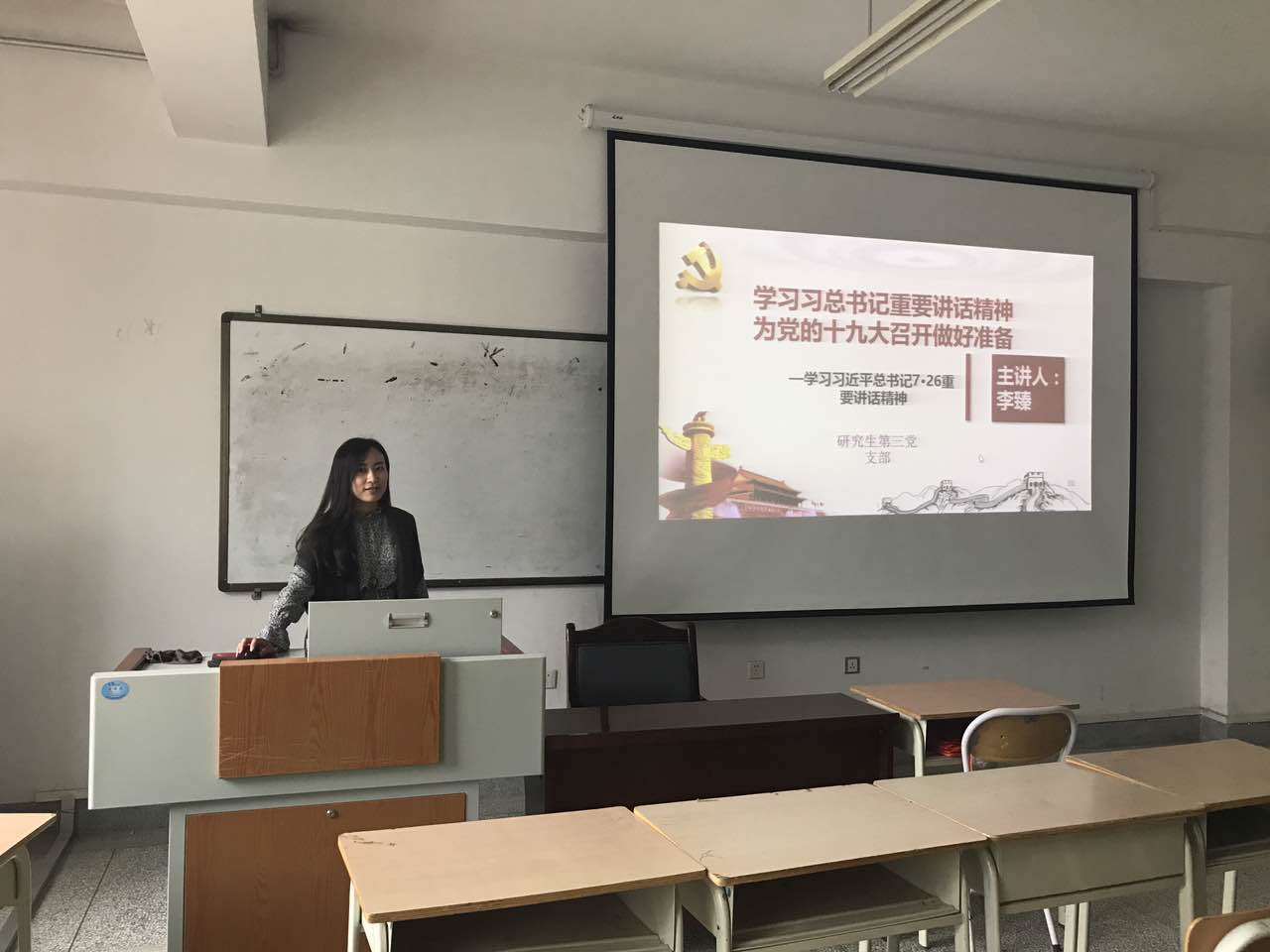薛娇、李臻、李振超等三名党员同志分别以《喜迎十九大》、《学习习近平总书记7·26重要讲话精神》和《网络意识形态阵地建设与夯实》为题进行了精彩的授课。三位党员的党课紧扣时代主题,紧跟国家大政方针走向,主要以习总书记7·26重要讲话精神为统领,在自我认真学习与深入思考的基础上,进行了深刻而又生动的讲解。