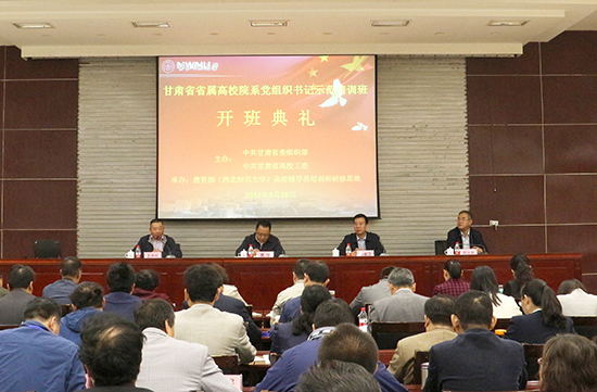 9月26日上午,甘肃省属高校院系党组织书记示范培训班开班仪式在伟德国际1946官方网站专家楼报告厅举行。甘肃省委组织部党员教育中心主任马振亚、甘肃省高校工委副书记贾宁、西北师大党委副书记刘玉泉出席开幕式并讲话。全省43所高校的150多位院系党组织书记参加培训。