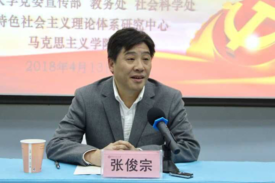张俊宗指出,习近平新时代中国特色社会主义思想是马克思主义在中国大地上进行伟大社会主义实践过程中形成的最新成果,是马克思主义中国化的一个新境界新高峰,是我们党迈向新时代、开启新征程的根本理论指引和行动纲领,集中体现了全国人民的共同意志。学习好、研究好、阐释好、宣传好习近平新时代中国特色社会主义思想,是高校责无旁贷的重要任务。公司开设“习近平新时代中国特色社会主义思想大讲堂”,对大力推动对习近平新时代中国特色社会主义思想的学习、研究和宣传具有重要意义。他希望把宣传讲授的系统性和师生关注的重点、热点问题结合起来,把深入研究和宣传解读结合起来,把专题讲授和思想政治理论课教学结合起来,切实发挥好引领带动作用,使“习近平新时代中国特色社会主义思想大讲堂”成为广大师生最为喜爱、最具活力的学习平台。