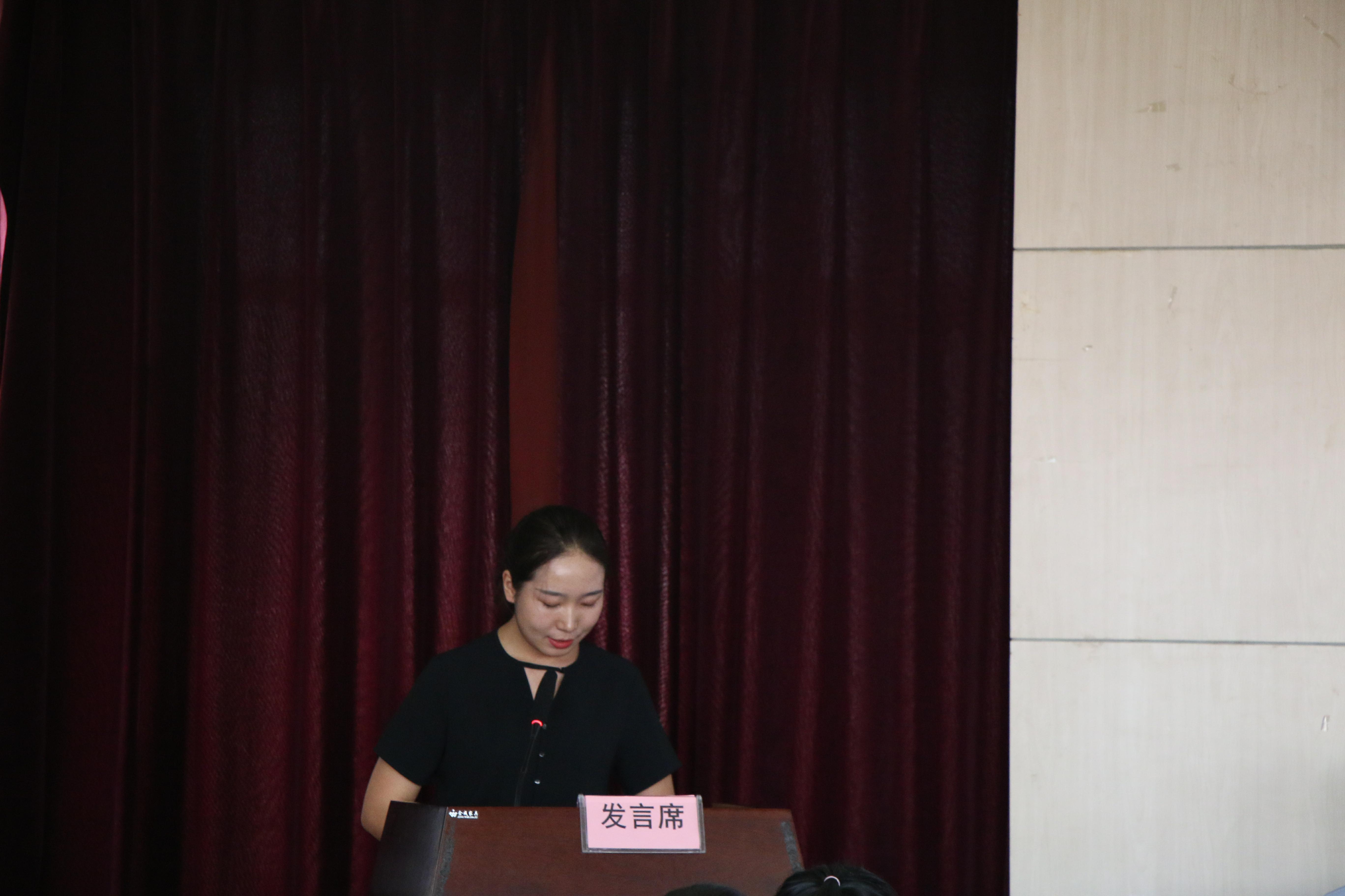 2018级马克思主义哲学专业硕士研究生兰娜同学代表研究生新生发言,承诺要树立人生目标,戒骄戒躁,脚踏实地,把握机会。