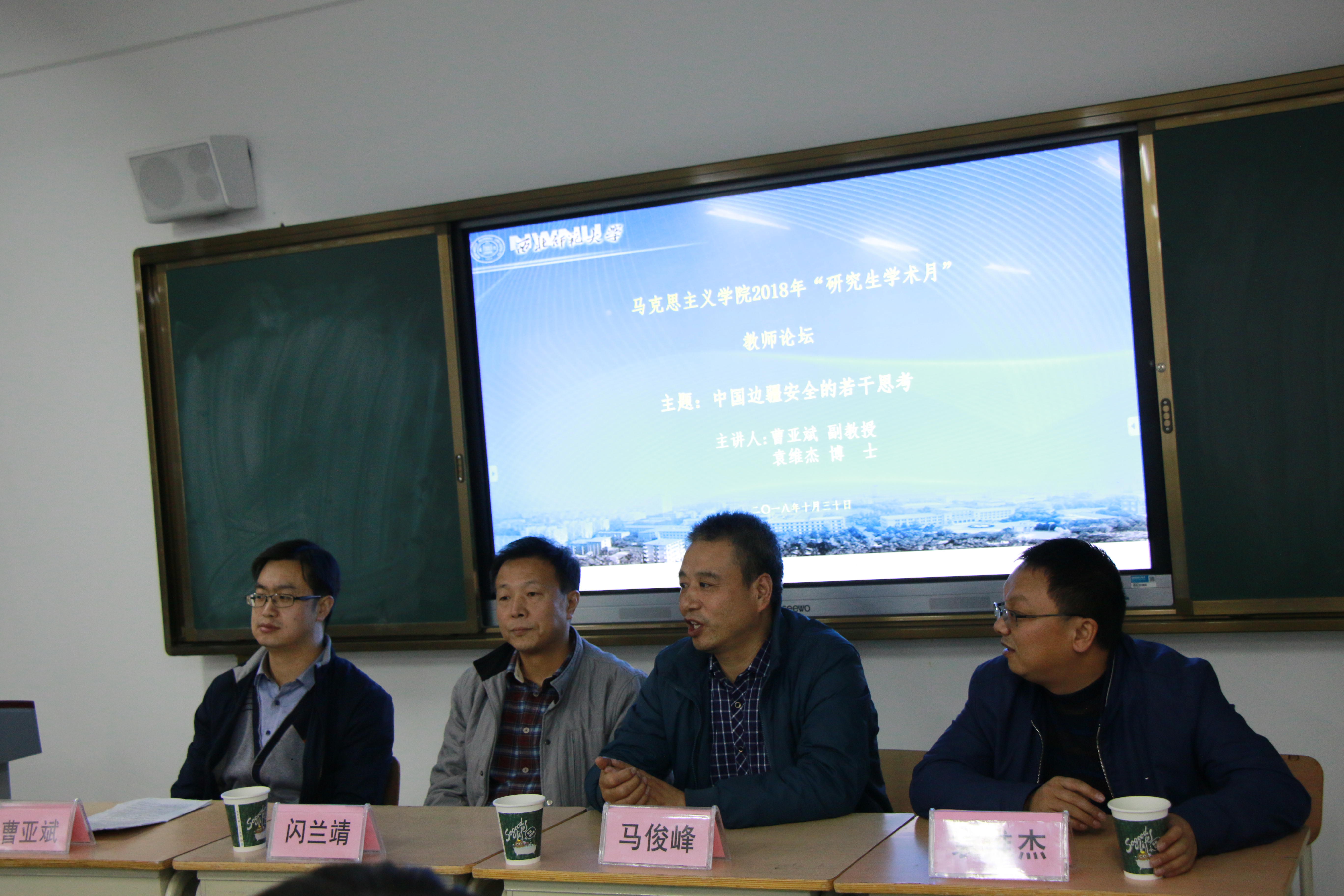 在答疑互动环节,老师和员工就各民族区别对待传统文化和人类命运共同体等问题展开了激烈的讨论。马俊峰副经理从马克思主义角度出发提出了“公民身份”、“疆域划分的目的”等四个建设性问题,闪兰靖副教授和曹亚斌副教授从不同的角度为大家解答了疑惑。马峻峰副经理结合讲座内容,提倡老员工从实际问题入手并学会独立思考,在追梦路上书写华丽篇章。