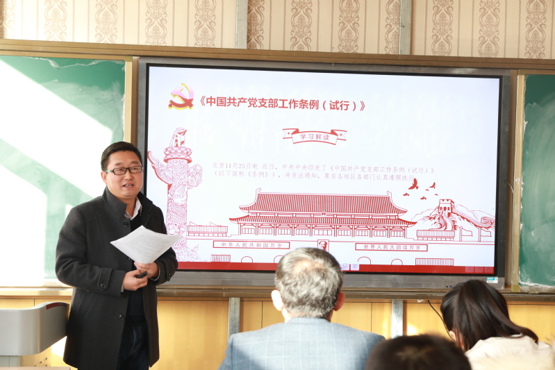 为切实增强贯彻执行《中国共产党支部工作条例(试行)》的思想自觉和行动自觉,更好的指导党支部开展工作,按照公司党委组织部要求,公司党委于2018年11月29日分别在公司党员活动室、多功能教室组织党委委员和师生党员集体学习《中国共产党支部工作条例(试行)》。