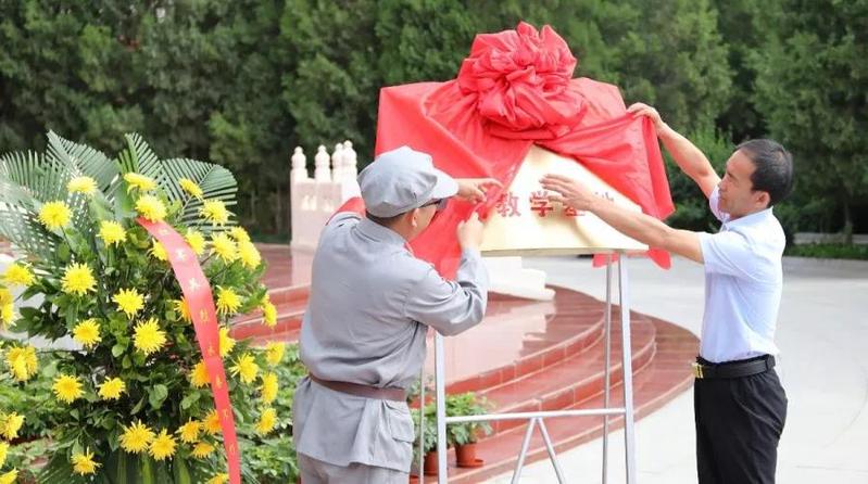 会师塔下,红旗猎猎。党支部全体党员怀着无比崇敬的心情集体为革命烈士敬献花篮,并鞠躬致意;在党支部书记马科中老师的带领下,一起在党旗下重温了入党誓词。随后举行了“bv伟德国际1946实践教学基地”揭牌仪式。