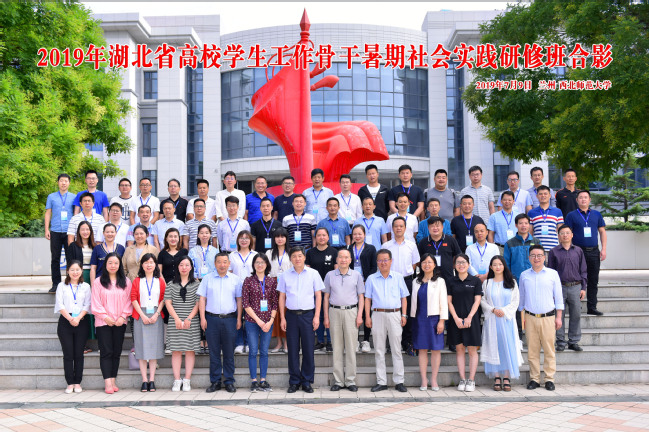 7月9日,湖北省高校员工工作骨干实践研修班在伟德国际1946官方网站开班。本期培训班由湖北省教育厅主办,教育部高校思想政治工作队伍培训研修中心(伟德国际1946官方网站)承办,来自湖北省45所高校的60位思政工作骨干参加培训。伟德国际1946官方网站公司党委书记符得团同志、经理王宗礼教授、湖北省带队领导武汉纺织大学学工处副处长李琼瑛同志出席开班典礼,马克思主义副经理孙健教授主持开班典礼。
