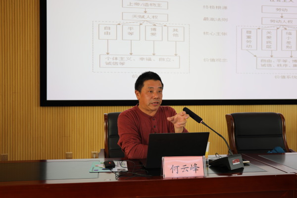 何云峰教授首先介绍了近期关于劳动问题的的学术会议、科研成果,再从五个方面展讲授劳动人权马克思主义理论:劳动人权马克思主义的两个原初假设、劳动人权马克思主义旨在建构一种新的社会文化价值传统、劳动幸福的三个维度、劳动幸福的发展历史以及劳动幸福当代意义,马克思劳动幸福理论的当代意义。