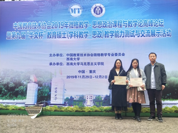 2019年11月29日至12月2日,中国教育技术协会微格教学专业委员会2019微格教学·思想政治课程与教学论高峰论坛暨第九届“华文杯”教育硕士(学科教学•思政)教学能力展示活动在重庆西南大学召开。