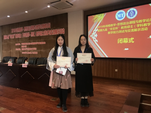 公司本硕一体生负责人闪兰靖副教授带队参赛,2018级本硕一体生任巧红、吴文房两位同学参加本次活动并获得了教学技能展示三等奖和教学设计三等奖两个奖项。