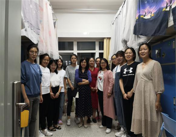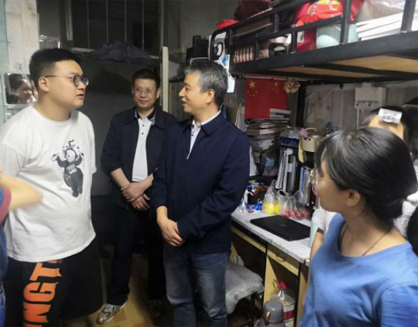 金建萍副经理、研究生秘书张莉老师负责走访研究生宿舍。金建萍老师一行所到之处,除了查看同学们住宿和生活保障条件外,注意督促和勉励员工勤于学习、敏于思考,强调要注重把所学知识内化于心、外化于行,形成自己独到的见解,有效处理好学与思、知与行的关系。