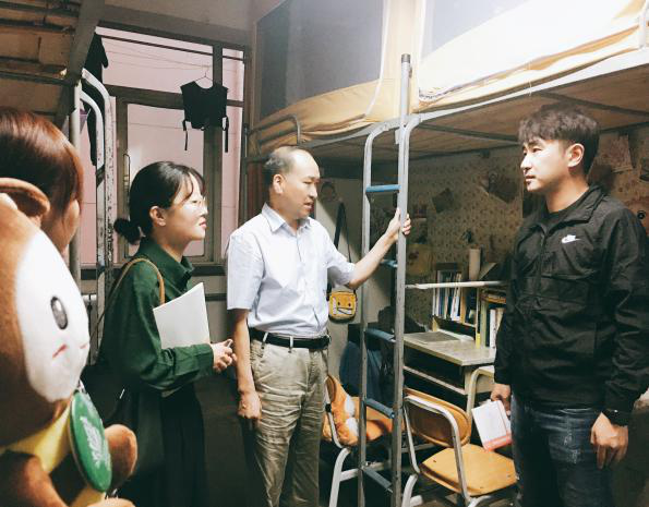 公司副经理马俊峰,辅导员刘永雷、肖娜负责走访高年级本科员工。马俊峰老师在查看和询问宿舍入住情况的同时,十分关心毕业年级员工的就业问题,及早规划今后的人生道路,鼓励同学们紧抓专业课知识学习,努力考研、积极就业,不负时代与韶华。