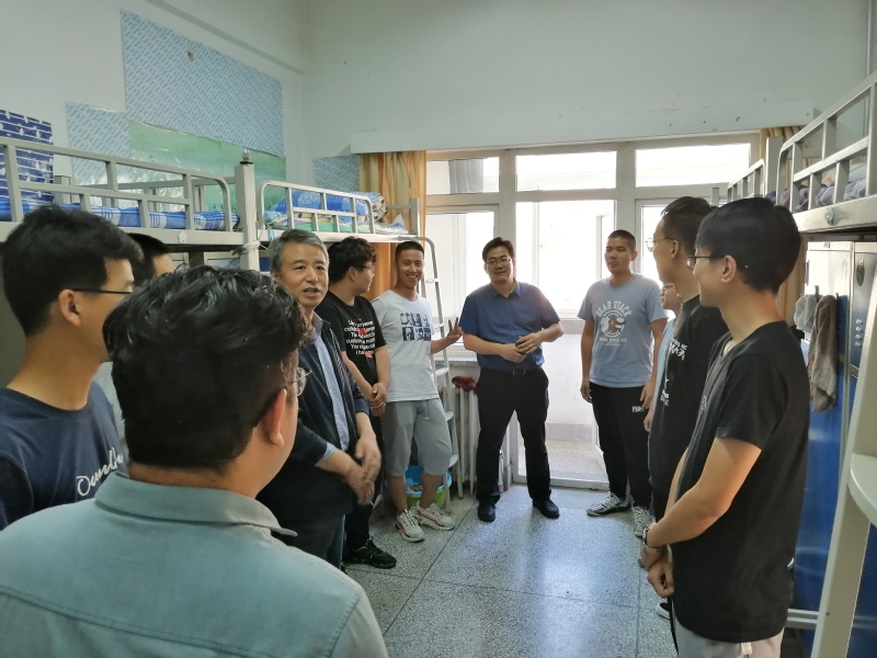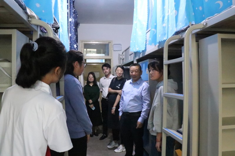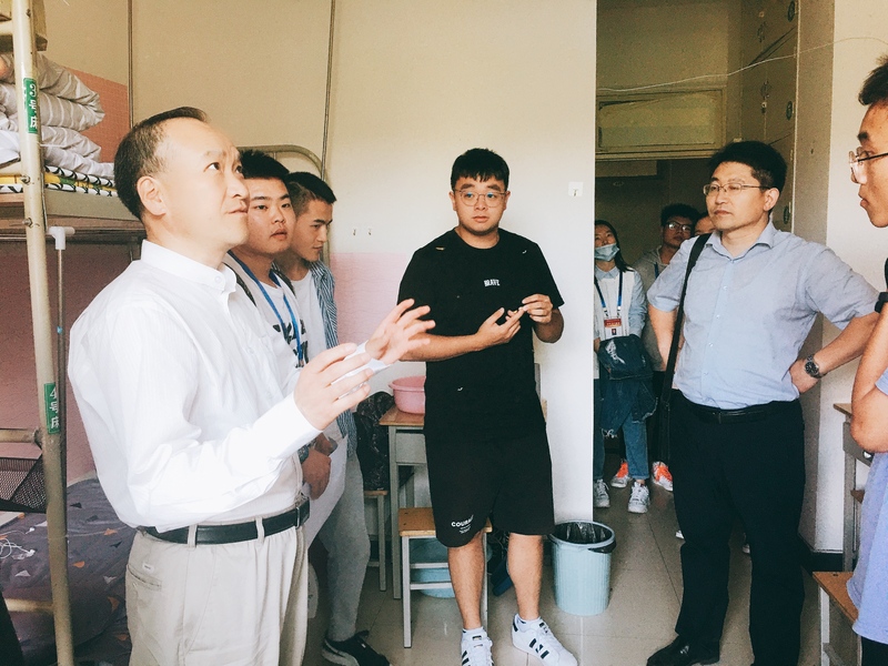 符得团书记走进宿舍与新生进行亲切交流,细心查看了员工宿舍的基础设施及安全保障情况,勉励大家要坚定理想信念,培养乐观向上的人生态度,刻苦努力,多思多学,以饱满的热情投入到新学期的学习生活中。