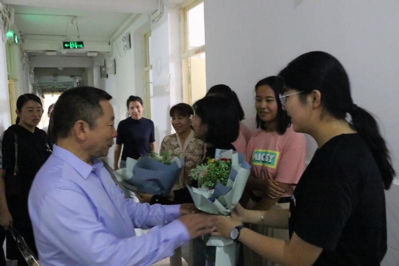 走访中新生也向公司领导及老师献上鲜花,2020级新生殷吉涛同学说:“我们一定会努力学好专业知识,做好我们的“事业”,努力提升自我文化修养,提升自我价值,不负公司与老师的期望。”