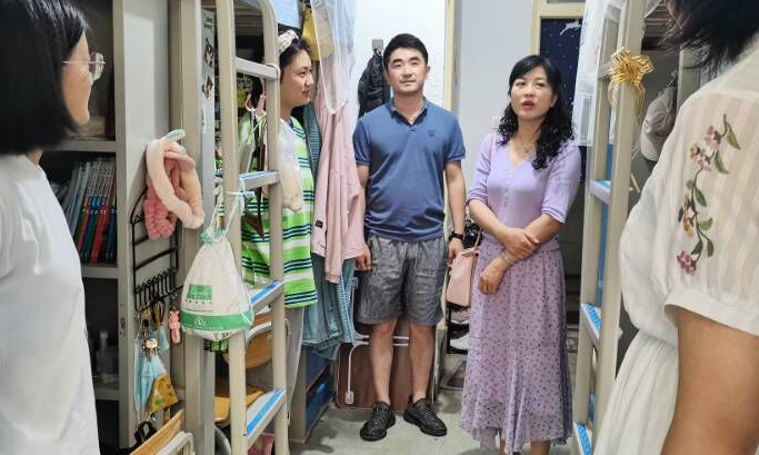 经理王宗礼、副经理孙健同班主任周方老师、吴娜老师以及辅导员毛娅楠老师、肖娜老师一同走访了2020级员工宿舍,对员工们宿舍安全、卫生、设施等方面逐一进行了检查,叮嘱在宿舍的同学要提升安全意识,养成良好的生活习惯,严格遵守公司的各项纪律和规章制度。同时鼓励同学们能够多多参加公司及公司里的活动和比赛,在努力学习的同时也锻炼自己的其他能力,做到德智体美劳全面发展。