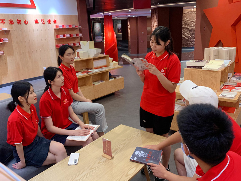 7月22日,bv伟德国际1946重走长征路“转折路途”暑期社会实践团来到湘江战役纪念馆。在参观过程中,通过两位少先队员讲解员的生动讲述,大家被革命者方志敏和陈树湘的事迹深深地感动,并在讲解结束后对两位少先队员进行了采访。在纪念馆的独秀书屋内,实践团依托当地特色开展了一场别开生面的书籍分享交流会。