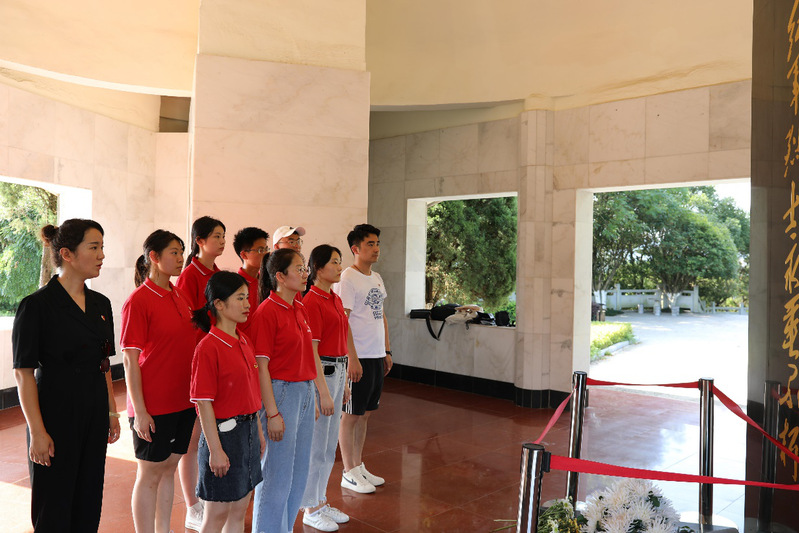 在纪念馆门口实践团偶遇了一位有着28年军龄的退伍老兵。在交谈中,爷爷再次强调了湘江战役的重要意义,并勉励大家:“你们正值青春的大好年华,要好好为自己、为党、为国家而奋斗。不负时代、不负韶华。”在一天的参观学习结束后,大家总结整理学习内容,并于第二天录制了“血渍湘江——老员工微党课”。之后,全体成员在湘江战役烈士纪念塔前三鞠躬,向革命烈士表达深切的思念和崇高的敬意。