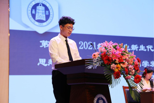 2021级思想政治教育3班张国浩同学代表本科新生发言。张国浩表达了来到bv伟德国际1946的喜悦之情和美好憧憬,表示要珍惜在伟德国际1946官方网站的学习机会,适应新的环境,提高自身素质,体悟“真理的味道”,传承马院精神,立志成为一名优秀的马院学子。