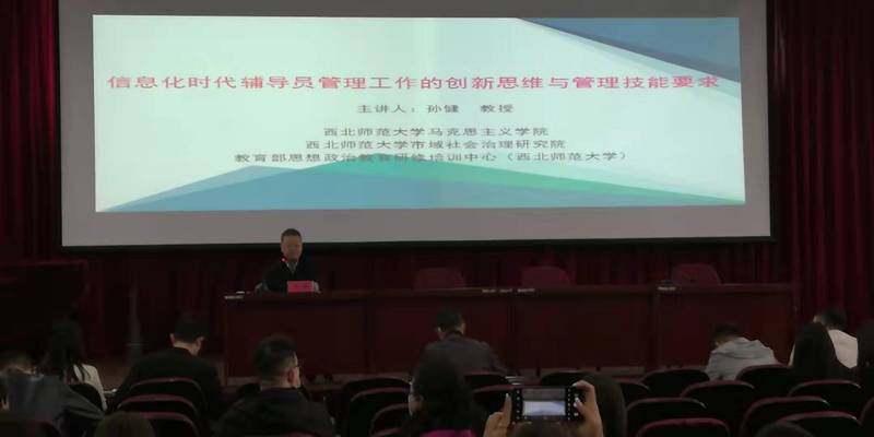 孙健教授作了题为《信息化时代辅导员管理工作的创新思维与管理技能要求》的首场报告。
