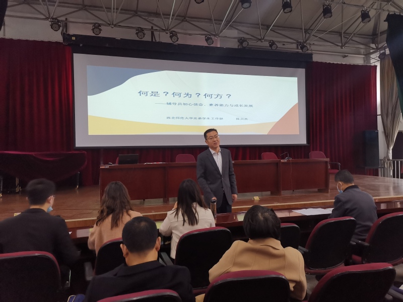 伟德国际1946官方网站党委员工工作部副部长(主持工作)陈兴杰同志作了题为《何是?何为?何方?——辅导员初心使命,素养能力及成长发展》的报告。