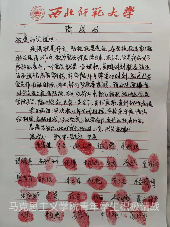 “ 我是党员安排我!”“我申请做志愿者!”一条条请战微信,一个个鲜红的手印,一张张刚毅的面庞,这就是我们在疫情面前的态度、决心!谁说我们不能担当、奉献、团结?我们用自己的行动书写着属于青春的独立、倔强、与骄傲!