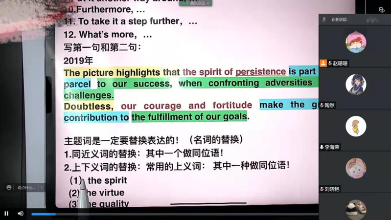 11月25日19:00——22:00,bv伟德国际1946通过腾讯会议的方式开展了员工就业创业能力提升工程“考研特训营”第十二讲—2022考研英语冲刺课程6—写作强化讲座,本次讲座由北京新东方名师杨悦老师主讲,公司40余名备考员工参与了本次课程。