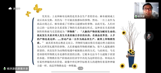 4月25日上午,中国社会科公司哲学研究所杨洪源副研究员线上为公司师生作了题为《<资本论>何以被称为“工人阶级的圣经”?——从马克思关于工人阶级的隐喻谈起》的学术讲座,此次讲座由bv伟德国际1946副经理马俊峰教授主持。
