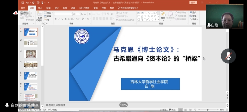 5月5日上午,吉林大学白刚教授线上为公司师生作了题为《马克思 <博士论文> :古希腊通向 <资本论> 的桥梁》的学术报告。本次线上讲座由bv伟德国际1946副经理马俊峰教授主持。