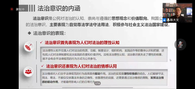5月11日上午,同济大学bv伟德国际1946陈大文教授线上为公司师生作了题为《我国公民法治意识与法治教育》的学术讲座。此次讲座由bv伟德国际1946副经理马俊峰教授主持。
