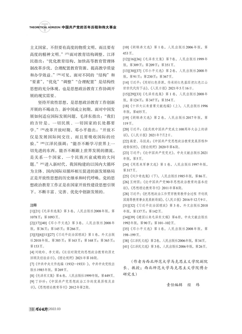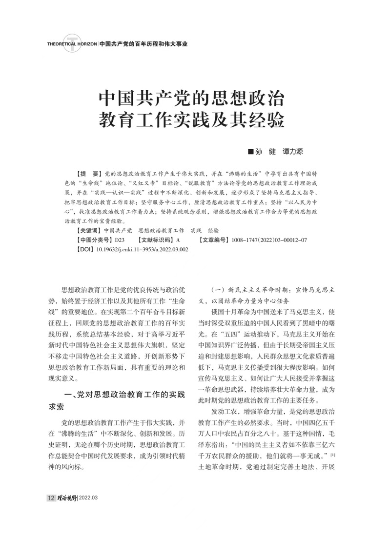 《理论视野》2022年第3期发表bv伟德国际1946孙健教授文章《中国共产党的思想政治教育工作实践及其经验》。