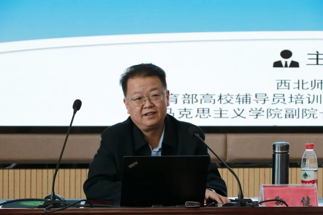 教育部高校思想政治工作队伍培训研修中心(伟德国际1946官方网站)常务副主任孙健以“高校基层党组织书记思想政治工作中的沟通与协作”为题,分析了沟通与协作在进行思想政治工作中的重要性,以及基层党组织书记应该具备的沟通能力和技巧。