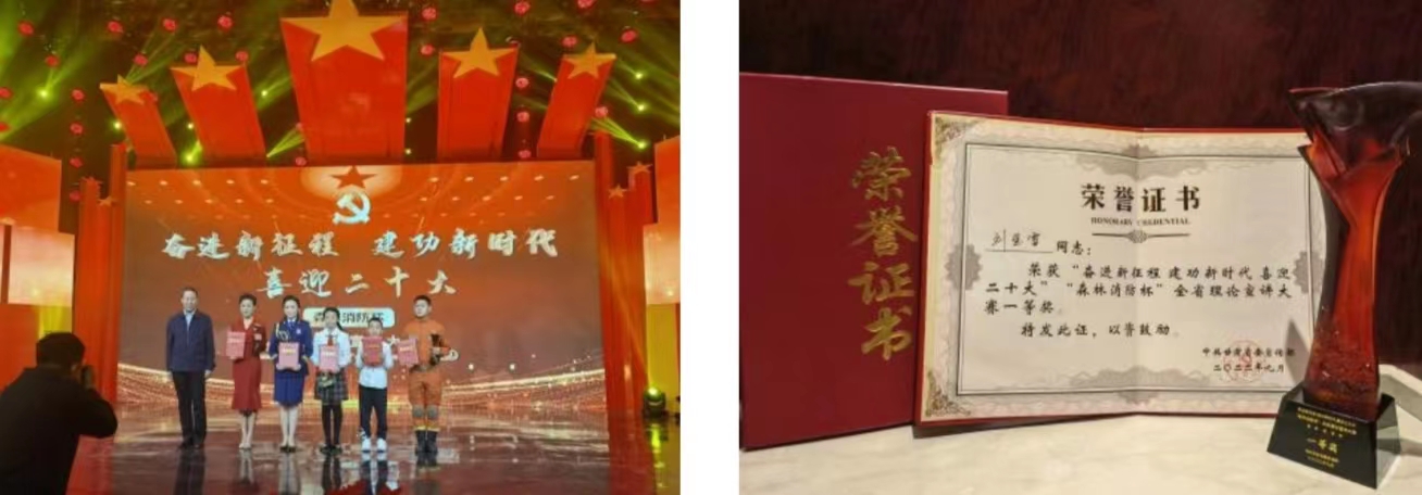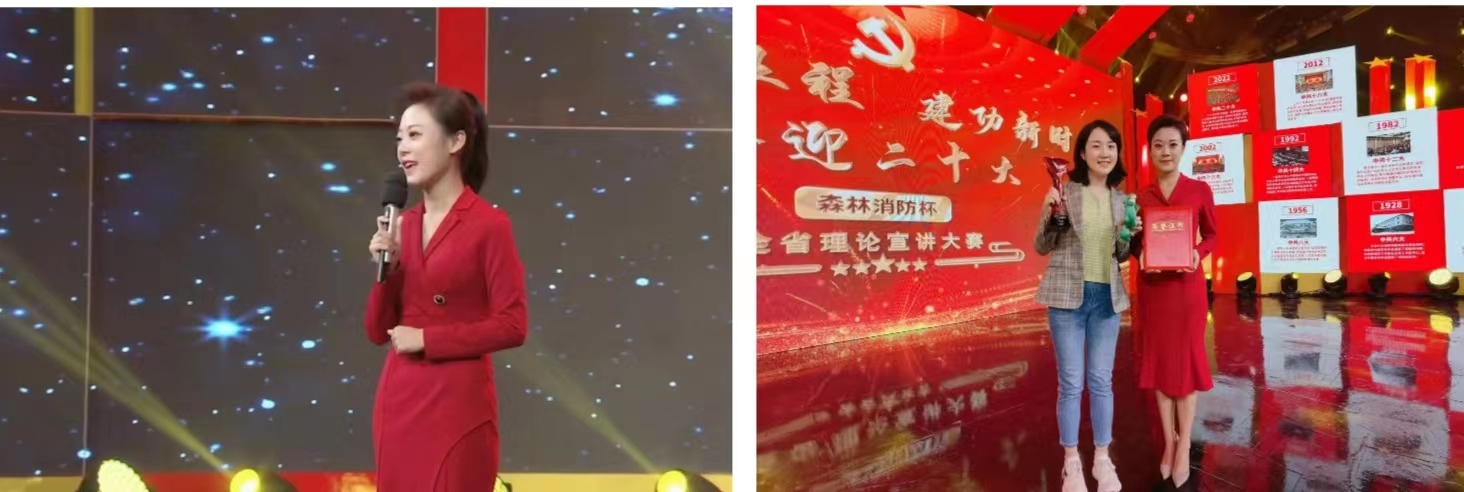 决赛现场,刘莹雪着一身庄重的中国红,以《初心闪耀一路芳华》为题,讲述了公司青年学子的支教故事,从“什么是教育公平”“怎样实现教育公平”“当代青年应该如何投身教育事业”三个方面展开理论宣讲,在决赛中脱颖而出,以总分第一名的成绩获大赛一等奖。