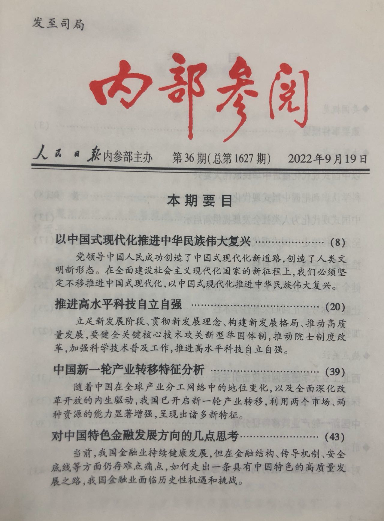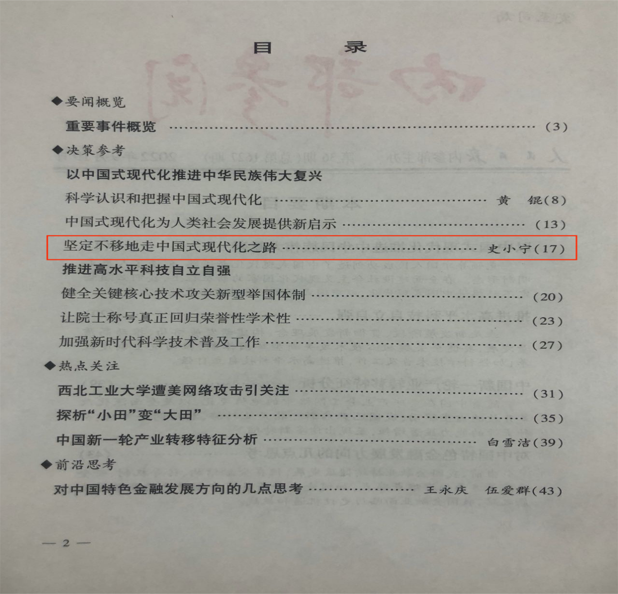 最近出版的《人民日报•内部参阅》2022年第36期“决策参考”栏目,刊发了bv伟德国际1946史小宁教授撰写的文章,题目是《坚定不移走中国式现代化之路》。