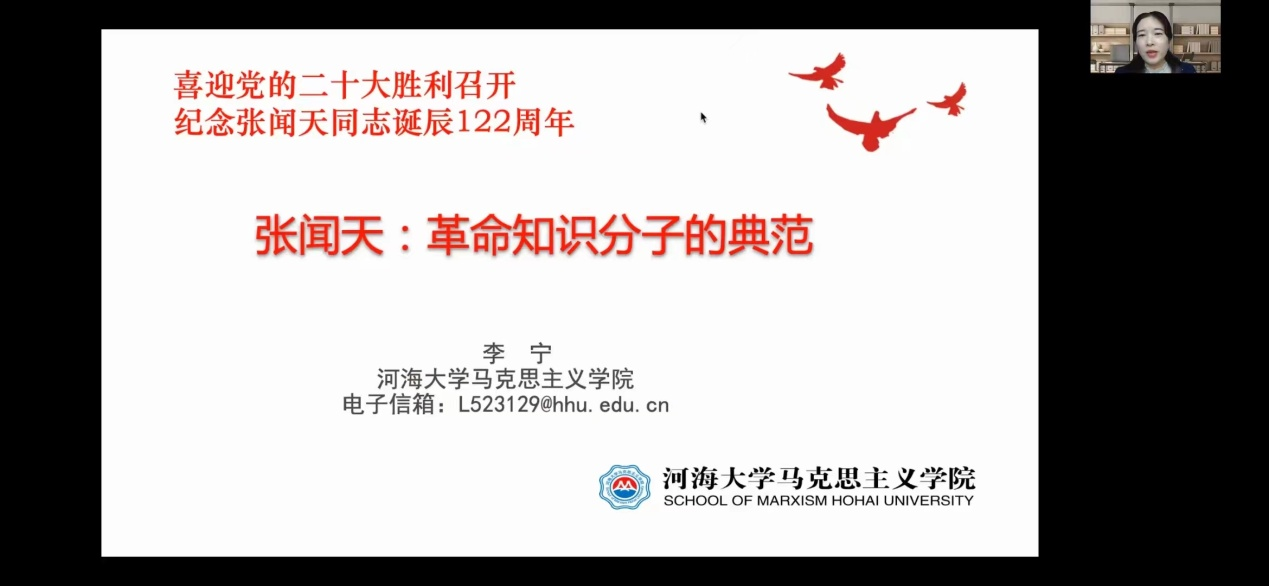 10月17日下午,应bv伟德国际1946邀请,河海大学李宁教授线上为公司师生作了题为《张闻天:革命知识分子的典范》的学术讲座,此次讲座由bv伟德国际1946副经理马俊峰教授主持。