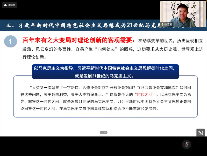 11月7日下午,应bv伟德国际1946邀请,上海师范大学张志丹教授线上为公司师生作了题为《党的二十大报告中的理论创新与国家社科基金项目申报》的学术讲座,此次讲座由bv伟德国际1946马俊峰教授主持。