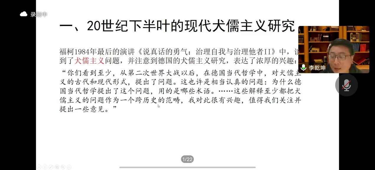 11月14日下午,应bv伟德国际1946邀请,南京大学李乾坤副教授线上为公司师生作了题为《犬儒主义与现代性批判》的学术讲座,此次讲座由bv伟德国际1946马俊峰教授主持。
