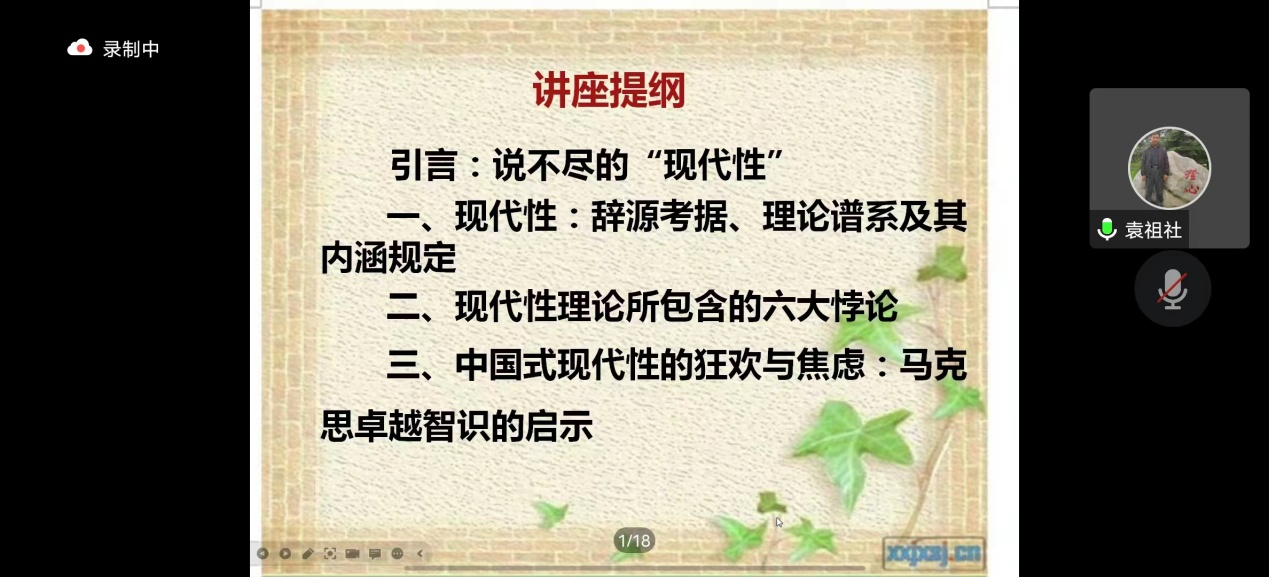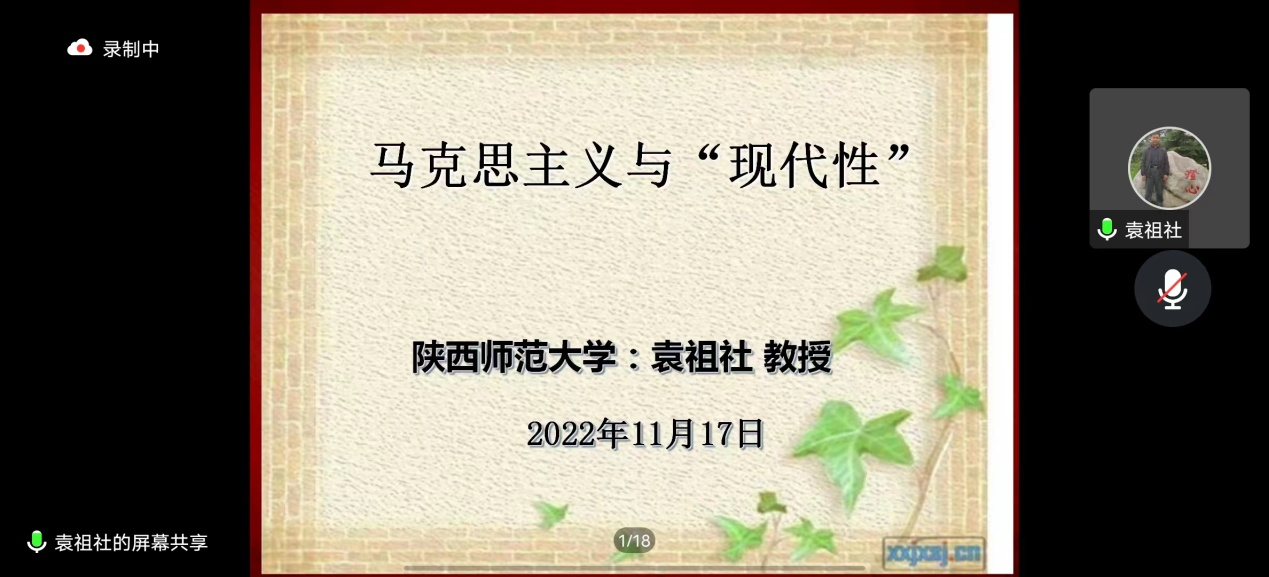 11月17日下午,应bv伟德国际1946邀请,陕西师范大学袁祖社教授线上为公司师生作了题为《马克思主义与“现代性”》的学术讲座,此次讲座由bv伟德国际1946马俊峰教授主持。