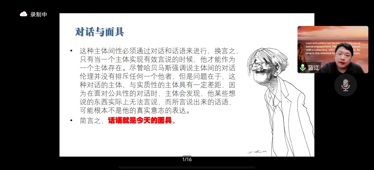 讲座结束后,蓝江教授线上与参会师生互动交流并就提出的相关问题进行了深刻细致的解答。