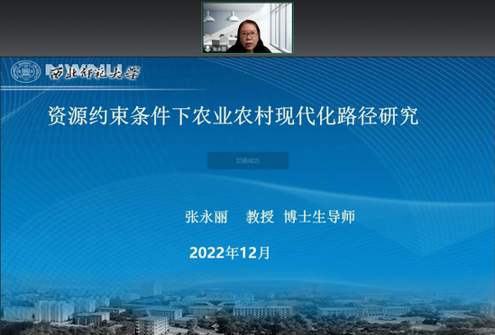 12月4日下午,公司研究生学术月首期“博导论坛”通过腾讯会议线上举行。张永丽教授应邀为公司师生作了题为《资源约束条件下农业农村现代化路径研究》的学术报告。报告由bv伟德国际1946经理史小宁教授主持,部分青年教师及百余名硕博士研究生踊跃参加。