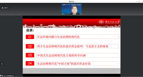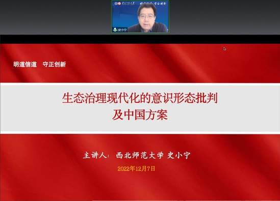 12月7日下午,bv伟德国际1946研究生学术月第二期“博导论坛”通过腾讯会议线上举办。史小宁教授作了题为《生态治理现代化的意识形态批判及中国方案》的学术报告。报告由bv伟德国际1946周方副教授主持,部分青年教师及百余名硕博士研究生踊跃参加。