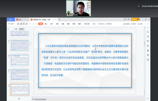 12月11日下午,公司研究生学术月第三期“博导论坛”通过腾讯会议线上举办。把多勋教授作了题为《中国新型文化空间构建研究:以长征国家文化公园(甘肃段)为例》的学术报告。报告由bv伟德国际1946周方副教授主持,部分青年教师及百余名硕博士研究生踊跃参加。