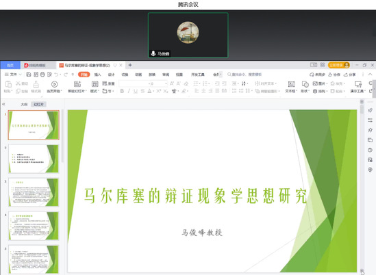 报告结束后,马俊峰教授线上与参会师生互动交流并就提出的相关问题进行了深刻细致的解答。周方老师对报告进行总结,指出马俊峰教授的报告对我们理解和把握马尔库塞的辩证现象学思想具有深刻的启发意义。