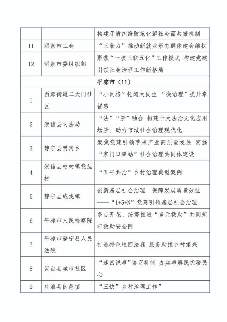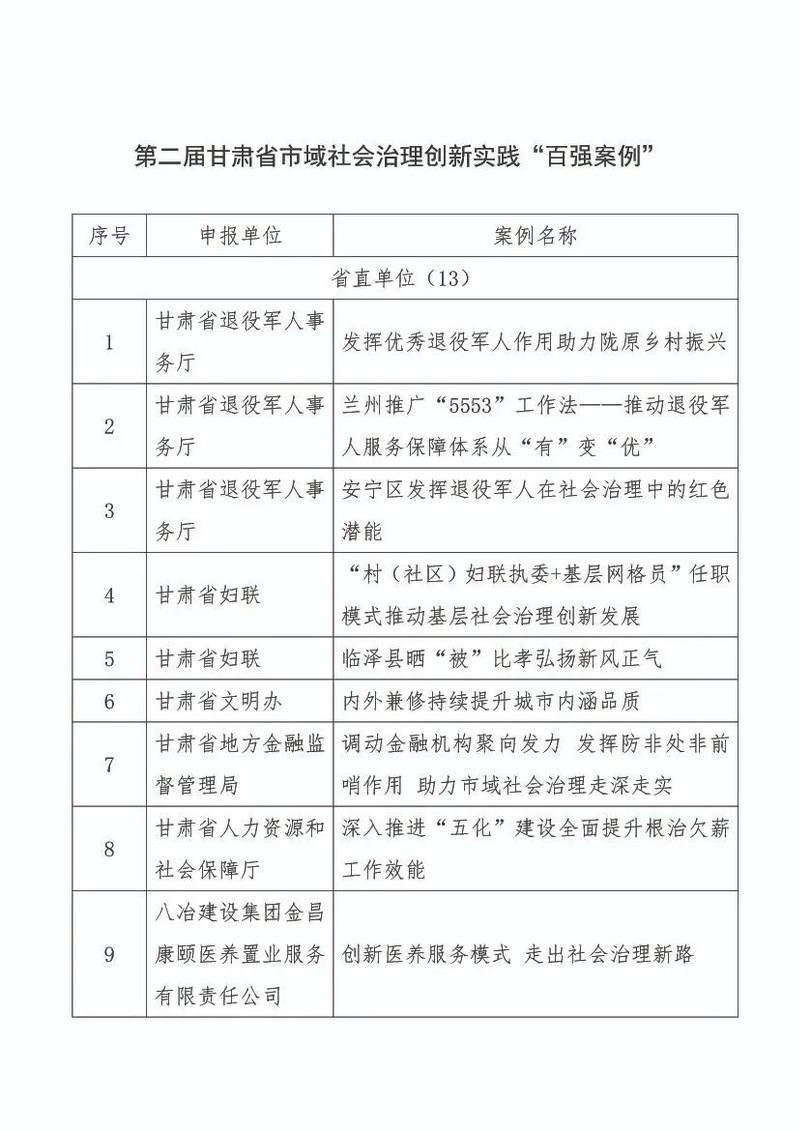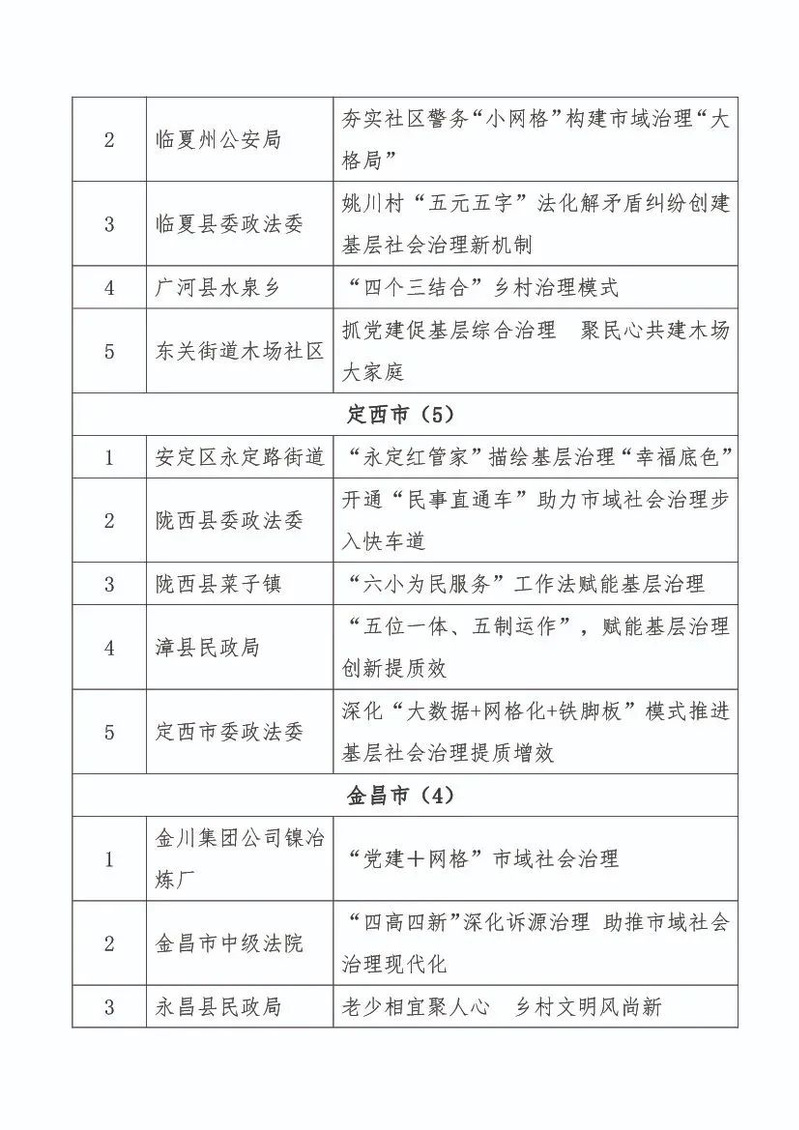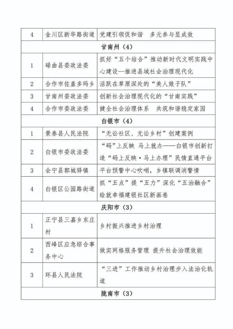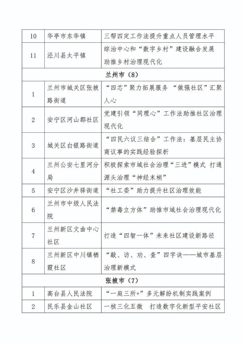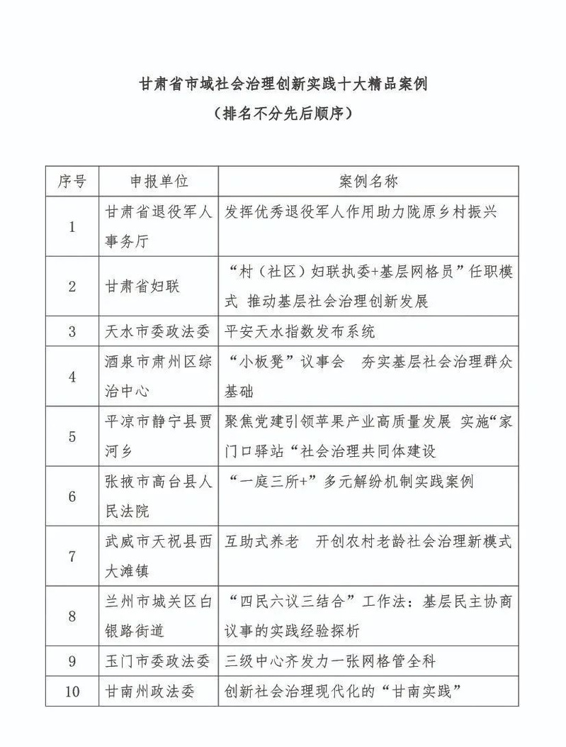 甘肃省市域社会治理创新实践十大精品案例名单公布