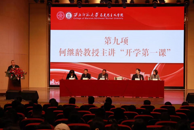 全国优秀教师何继龄教授为全体师生讲授精彩的“开学第一课”。他希望马院学子能做到以下几点:一是戒除三种陋习,即懒、傲、怨,争做一名勤快、谦虚、积极向上的人。二是提升四种能力,即“说”、“学”、“逗”、“唱”,争做一名通晓马克思主义基本理论、坚持终生学习、善于传授知识、坚定唱响主旋律的人。三是紧跟四个目标,即“宽胸怀、爱读书、善思考、重实践”,争做一名海纳百川、学识渊博、知行合一的人。四是夯实六大素质,即政治素质、道德素质、文明素质、知识素质、管理素质、人格素质,争做一名全方位、多层次、有涵养的人。整场授课语言丰富生动,解疑释惑,把道理讲深、讲透、讲活,是一堂沟通心灵、启智润心、激扬斗志的“大思政课”,同学们深受启发,获益匪浅。