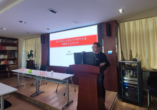 汪勇教授围绕马克思主义理论学科研究生的问题意识及其培养这一主题,从近些年马理论学科及其研究生的基本情况出发,以员工的科研选题为例,从马克思主义理论学科研究生的问题的重要性及其意义进行了精彩而又详细的讲解。汪教授指出,马克思理论学科研究生问题意识存在的问题主要体现在发现问题的意识不强、分析问题的意识不强、解决问题思考不全面等方面,并对存在的这些问题提出了相应的对策建议,拓展了研究生的研究视野,有助于提高研究生的科学研究能力。