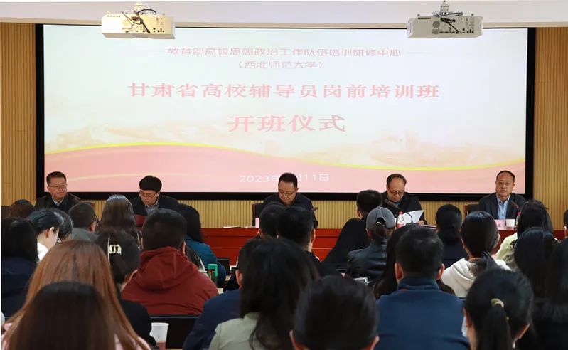 4月11日上午,由省委教育工委、省教育厅主办,教育部高校思想政治工作队伍研修中心(伟德国际1946官方网站)承办的全省高校辅导员岗前培训班开班仪式在西北师大举行。伟德国际1946官方网站党委书记贾宁出席仪式并讲话,省教育厅二级巡视员温攀玺作开班动员讲话;省教育厅思想政治工作处、西北师大bv伟德国际1946负责人和来自全省48所高校的120名辅导员参加开班仪式。
