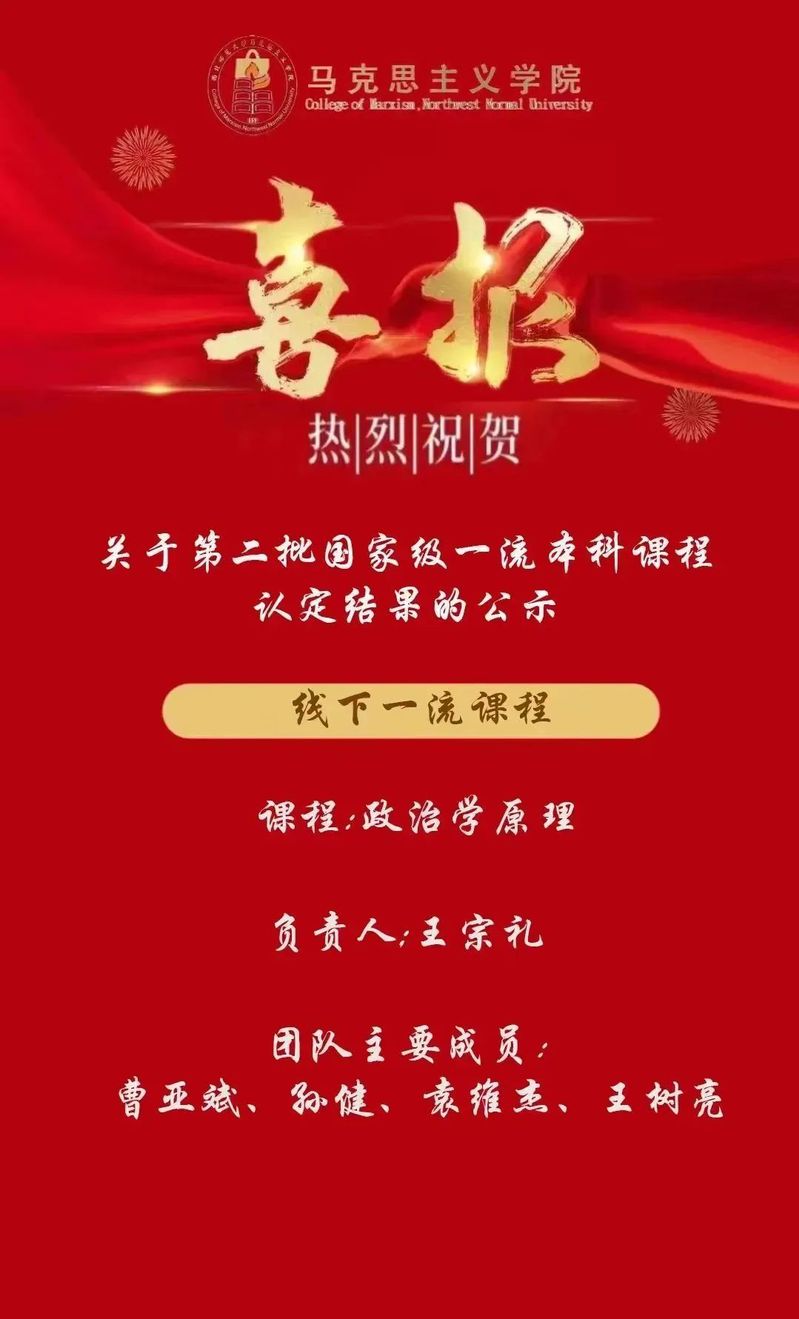 近日,在中华人民共和国教育部发布的《关于第二批国家级一流本科课程认定结果的公示》中,公司开设的《政治学原理》课程,被认定为线下一流课程。