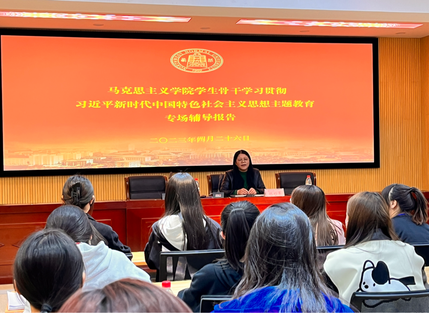 魏彩苹教授指出学习党的二十大报告精神,要深刻领会党的二十大的主题、过去五年的工作和新时代十年的伟大变革、开辟马克思主义中国化时代化新境界、新时代新征程中国共产党的使命任务、中国式现代化的中国特色和本质。党的二十大报告总揽全局、思想深邃、内涵丰富,通篇贯穿坚定的信念追求、强烈的使命担当、真挚的为民情怀,闪耀着马克思主义真理的光芒,是推动中国特色社会主义不断前进的政治宣言、理论纲领和行动指南。我们要牢牢把握这个主题,初心不变、矢志前行,以奋发有为、攻坚克难的精神状态,在迈向中华民族伟大复兴的征程上不断开辟新境界、创造新辉煌。