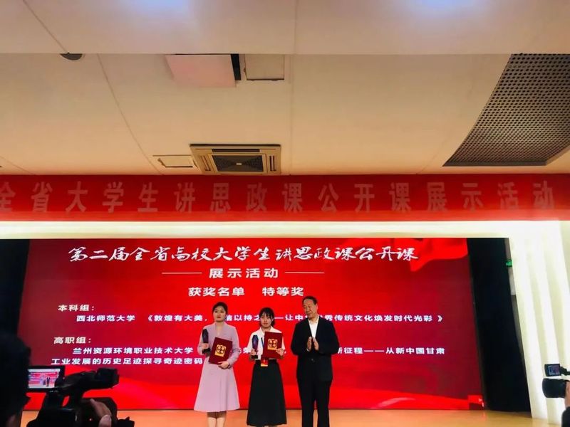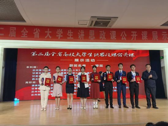 5月5日,由省委宣传部、省委教育工委主办,甘肃农业大学承办的第二届全省高校老员工讲思政课公开课展示活动总决赛在甘肃农业大学举办。活动共有60支本科和高职队伍入围,决赛评分采取百分制,专家组从教学设计、课堂教学等方面进行现场评分。经过激烈角逐,由公司教师韩璐、毛娅楠、赫蓉指导,2020级研究生夏宇主讲的《敦煌有大美,自信以持之——让中华传统文化焕发时代光彩》荣获特等奖(第一名),由公司教师郝相赟、高晓英、赫蓉指导,2021级研究生刘莹雪主讲的《奏响生态文明建设的时代强音——习近平生态文明思想的甘肃实践》荣获一等奖(第五名)。这是继公司师生团队在第六届全国高校老员工讲思政课公开课展示活动中荣获二等奖后,再次荣获的省级竞赛殊荣。优异的成绩不仅体现了公司始终聚力立德树人根本任务,扎实推动思政课建设所取得的成效,同时也彰显了西师学子良好的马克思主义理论素养和精神风貌。