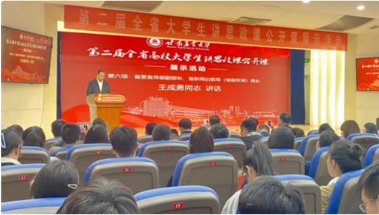 本次大赛旨在深入贯彻落实习近平总书记关于“大思政课”的重要指示批示精神,充分发挥高校思政课立德树人关键课程作用,坚持不懈用习近平新时代中国特色社会主义思想铸魂育人,引导员工深刻认识“两个确立”的决定性意义,增强“四个意识”,坚定“四个自信”。省委宣传部副部长、省新闻出版局(省版权局)局长王成勇在讲话中指出,老员工讲思政课实现了师生角色互换,通过空间、主体互换,打造了最便捷的“移动课堂”。并寄语广大师生要抓好关键课程,持续深入推进思政课改革创新,在讲好“陇原故事”的同时,不断探索打造富有甘肃特色的“大思政课”教育体系。