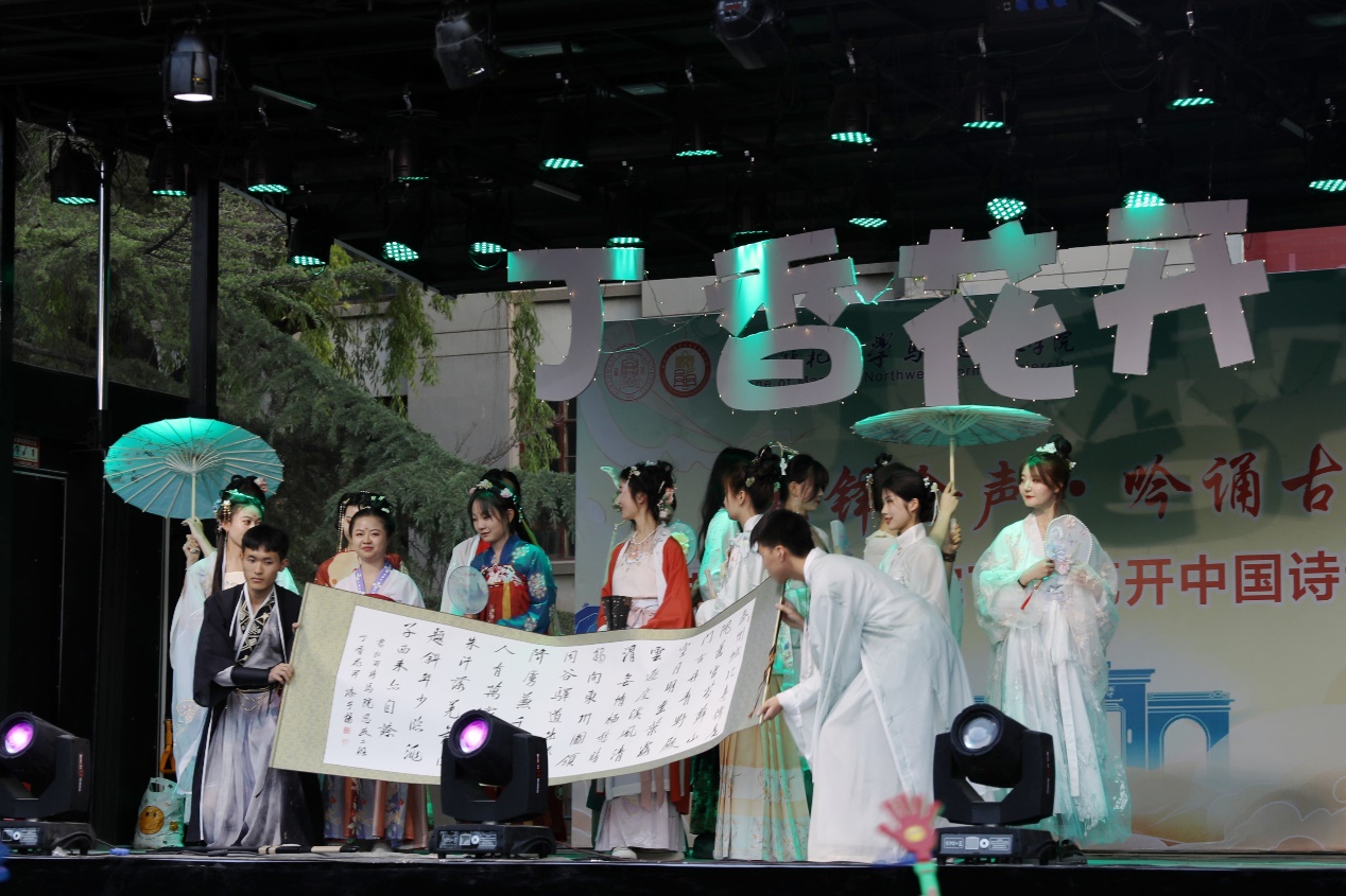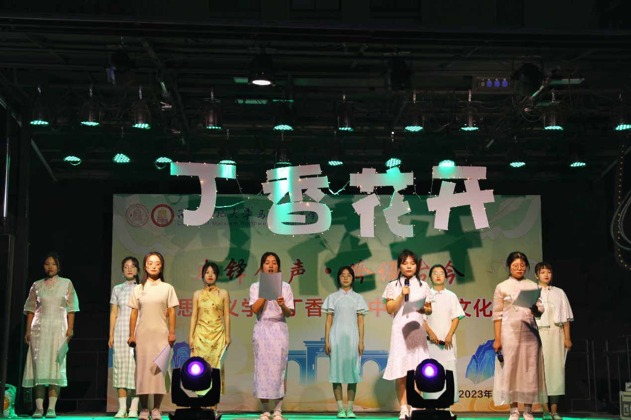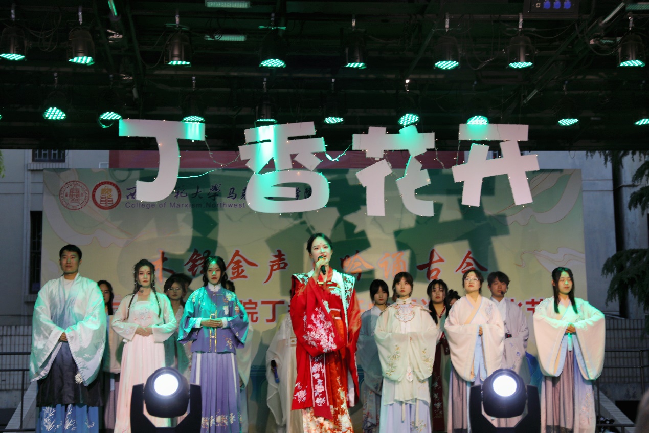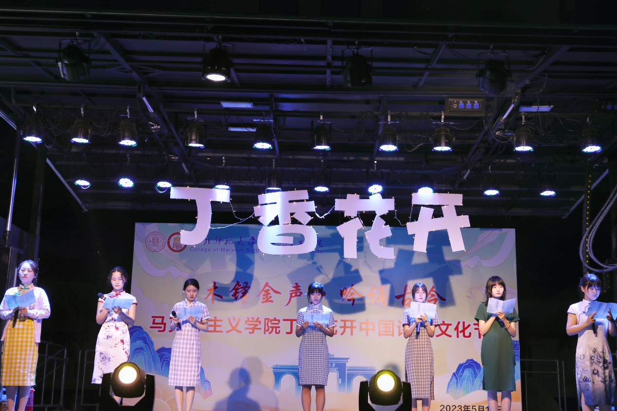 诗韵悠悠,意象万千。此次活动在汉服秀《汉裳之花,盛开师大》中缓缓拉开序幕,本场活动分为“回溯往昔 追忆历史“,”弦歌不辍 薪火相传“,”绽放未来 时代新章“三个篇章,每一篇章都倾情展现马院学子吟诵诗歌经典,赓续中华民族精神,永葆奋斗姿态的独特风采。